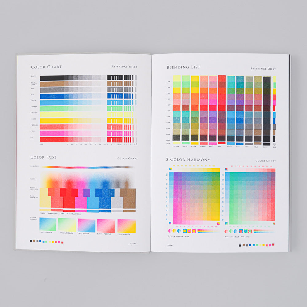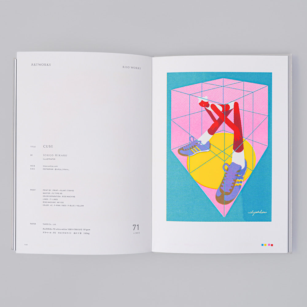 By comparing actual data with printed materials, you can simulate and compare the colors of the data with the actual Risograph output. This comprehensive resource functions both as a practical guide to Risograph printing techniques and an artistic showcase.