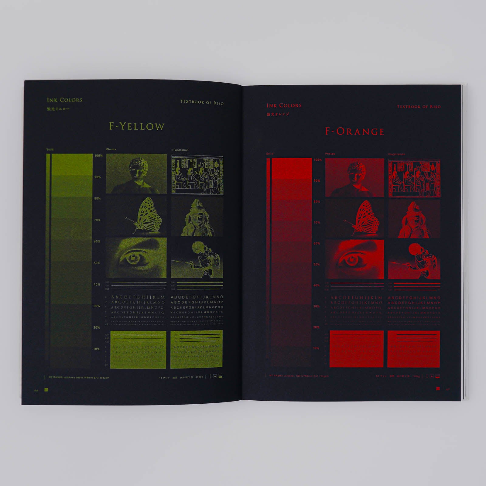 今回のNo.1はリソグラフ アートプリントの印刷見本と作品を織り交ぜたアートブックになります。全ページリソグラフで印刷された実作品だけでなく、アートプリントの解説やデータも用意してあり、リソグラフアートの作品アーカイブだけでなく、制作者の手引きやレファレンスとしてもご利用頂けます。全11色のドラムによるリソグラフのカラーチャート、株式会社竹尾協賛によるリソグラフと紙の適正サンプル、様々な業界のアーティスト、クリエイターによるリソグラフ作品、東京藝術大学デザイン科の学生によるリソグラフ実験ページなど、リソグラフを使ってアートプリントをする上で必要な印刷サンプルを幅広く掲載しました。実際のデータと印刷物を比較することで、データと実際のリソグラフの色の比較やシミュレーションも可能です。
