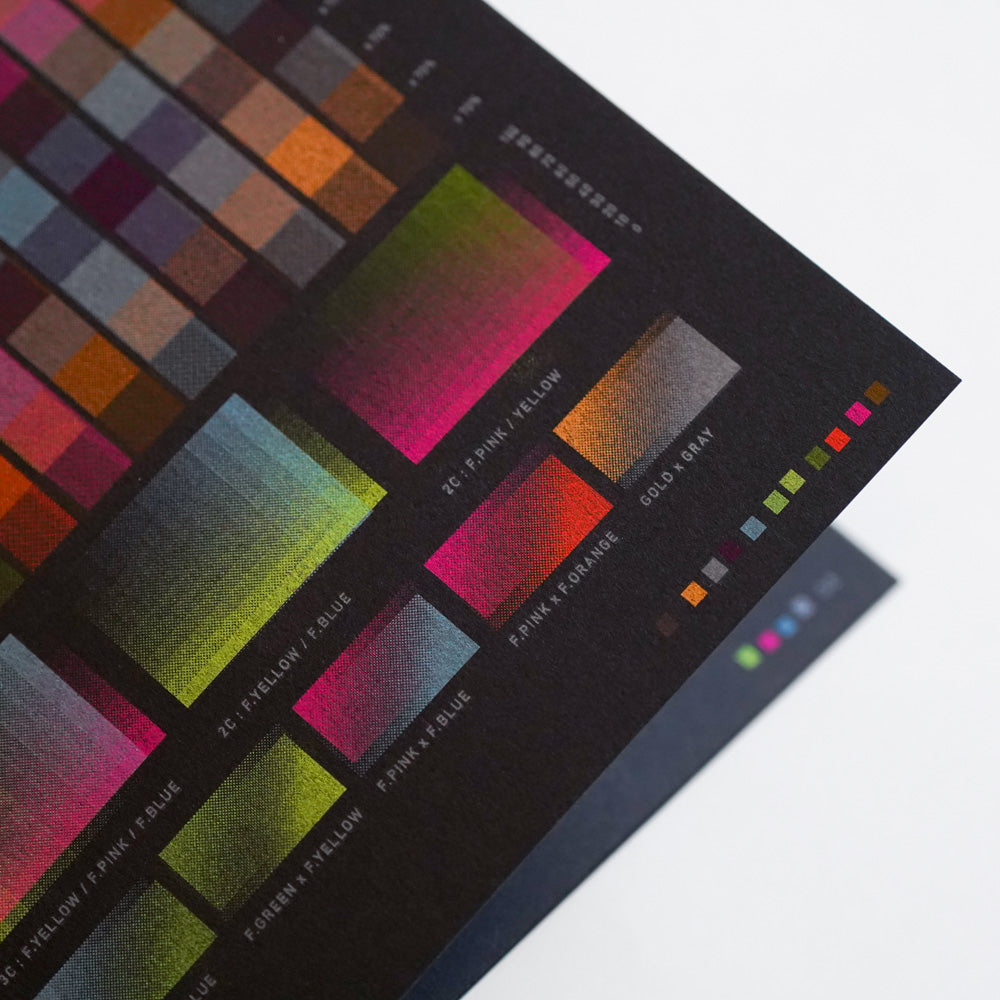 - A color chart using all 11 drum colors of Risograph printing